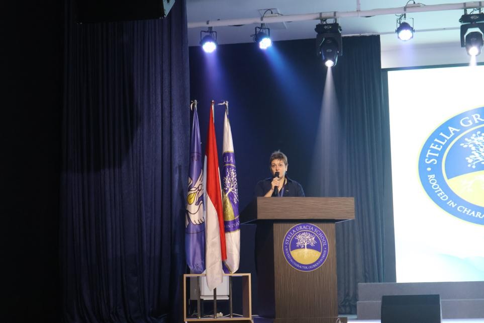 伊莉娜致辞。哈山努丁大学孔子学院供图