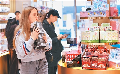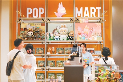 在重庆市渝中区来福士商场的泡泡玛特门店,市民选购相关产品。  孙凯芳摄(人民图片)