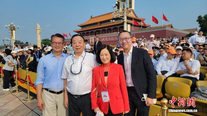 多位香港特区政府官员在现场观礼,并在社交平台分享感受。香港特区政府财政司司长陈茂波表示,阅兵仪式上,庄严威武的军容、先进强大的装备,充分体现国家军事、科技和综合实力的进步。这为保障国家主权、安全和发展利益,确保人民安居乐业,乃至守护整个地区的和平稳定,提供了最坚实的保障。作为中华民族一分子,他感到无比光荣。在风云多变的国际环境下,香港更要坚定维护国家核心利益,在融入国家发展中,积极发挥“超级联系人”和“超级增值人”的角色并贡献力量。