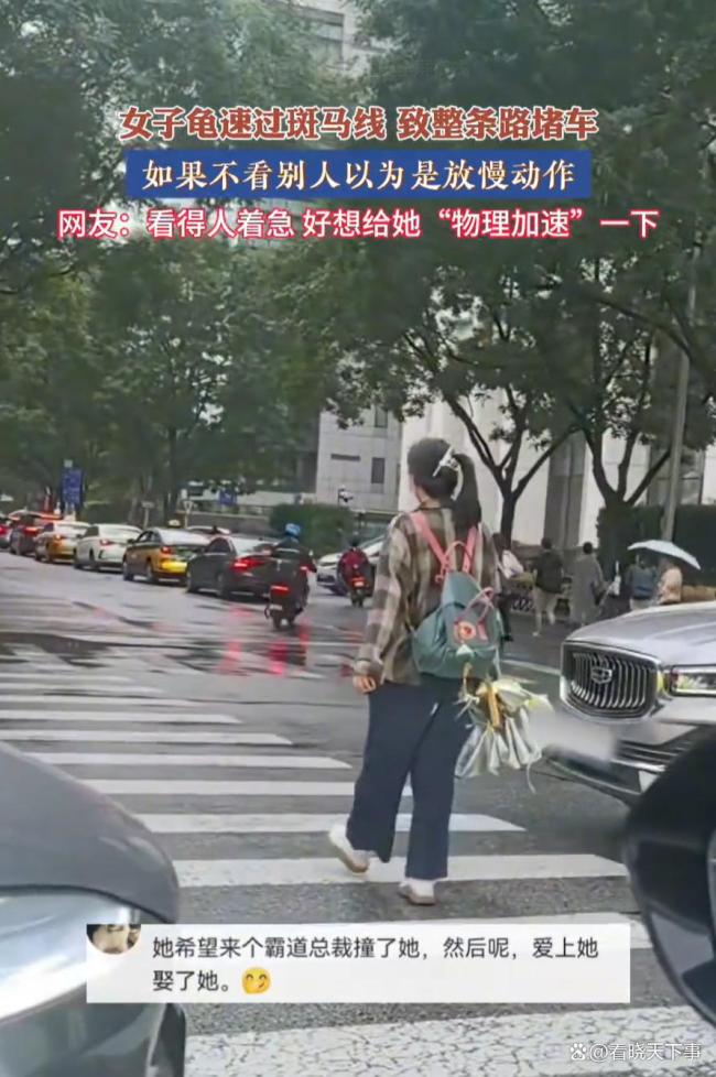 “新型碰瓷方式?”北京,一名女子走斑马线的行为引起了不少人的注意,她走路特别慢,慢到整条路的车都被堵住了,要不是看旁边路人的走路速度,还以为是有人把视频进行了慢放。网友:她是希望有霸总撞到她吗?