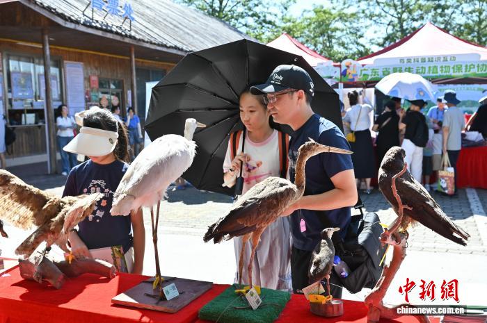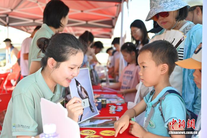 9月27日,2025年广东候鸟护飞行动启动仪式在位于广东省广州市的南沙湿地景区举行。本次活动以“绿美广东·万众护飞”为主题,近10家鸟类保护相关单位现场布展,通过打卡互动、公益课程体验、趣味鸟类科普小游戏等为民众科普野生鸟类保护法律法规和科学知识。图为鸟类知识科普展位吸引民众。中新社记者 陈楚红 摄