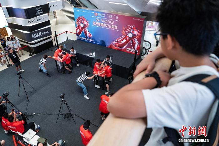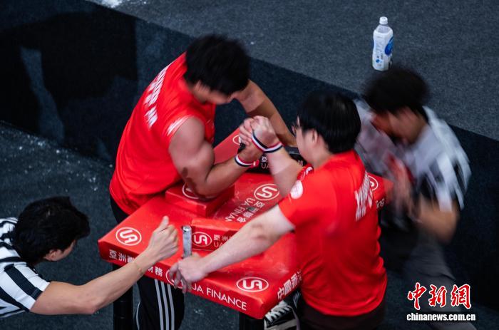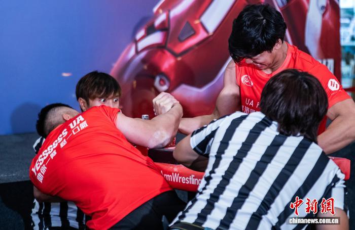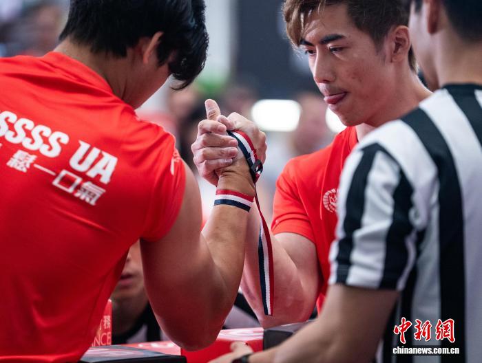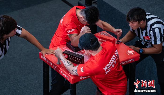 香港举办腕力公开赛 壮汉比拼手腕力量