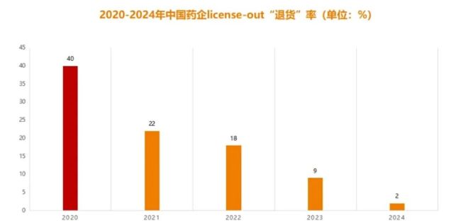 2020-2024年中国药企licence-out“退货”率 图源:动脉网