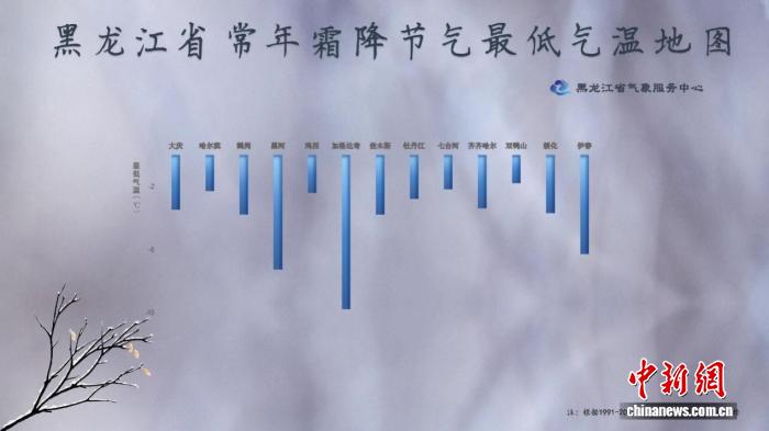 黑龙江省常年霜降节气最低气温地图。黑龙江省气象局供图