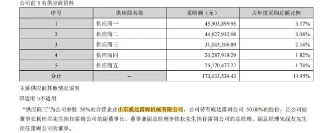 然而,山东威达并未介绍山东威达雷姆机械有限公司在前5大供应商中,说明后者已被“剔除”前5大供应商名单。