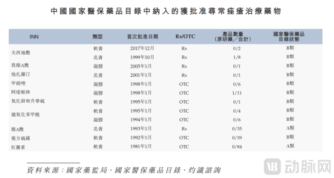 中国国家医保药品目录纳入的获批准寻常痤疮治疗药物清单