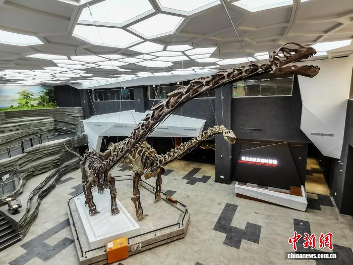 近日,三江马门溪龙的模式标本在重庆自然资源科普馆展出。(重庆市规划和自然资源局供图)