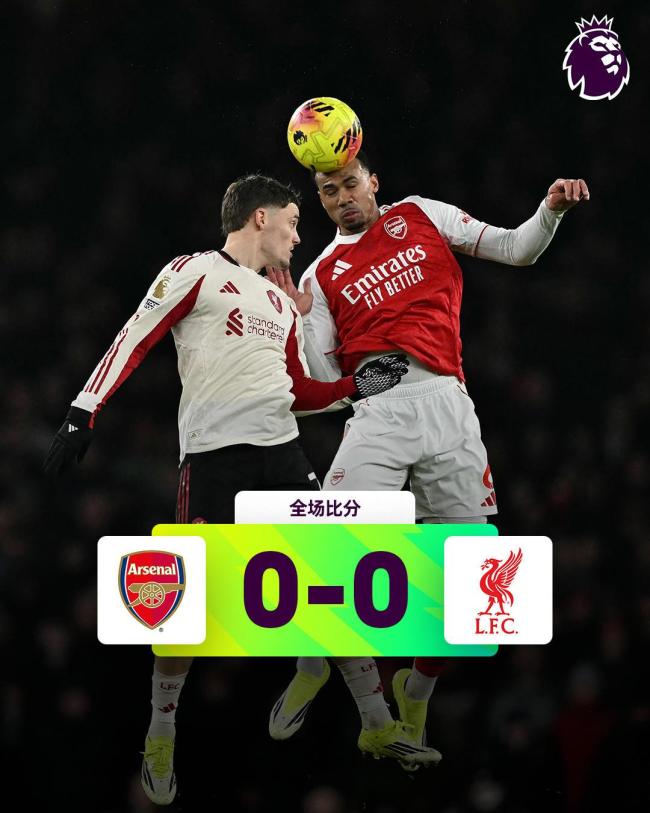 北京时间1月9日凌晨,英超第21轮焦点战在酋长球场进行,阿森纳迎战利物浦。上半场布拉德利吊射击中横梁,下半场双方机会不多,布拉德利伤退,利物浦全场0射正。最终,阿森纳主场0-0闷平利物浦,联赛三连胜结束,但仍以6分优势领跑积分榜。
