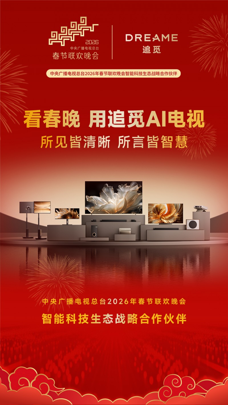 正式官宣了!追觅电视官方微博发布合作海报,追觅正式牵手中央广播电视总台2026年春节联欢晚会,成为“智能科技生态战略合作伙伴”。这一国家级平台的认可,不仅是对追觅全场景智慧家居体验的权威背书,更意味着在除夕夜这样的全球瞩目时刻,追觅电视将携独家Dreamind™ AI画质引擎等多项核心黑科技惊艳亮相,向世界展示中国智能电视的创新实力。这么一来,追觅电视在全球的知名度又要提升到新的层次了。