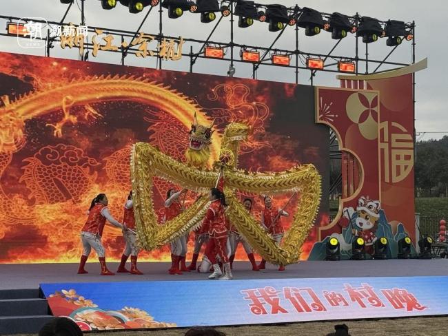 晚上七点半,村晚演出以震撼的开场秀《天马行空·金鬃献瑞》拉开帷幕。夜空中,无人机编队变幻出吉祥天马踏云而来、新年祝福跃然天际的绚烂图案,引得观众阵阵惊呼。不同于专业晚会的华丽,这场村晚的主角全是全省各地的村民达人。来自各农村文化礼堂、社区文化家园的文艺团队轮番登场,节目接地气、有温度,每一段表演都展现了村民们对美好生活的热爱。