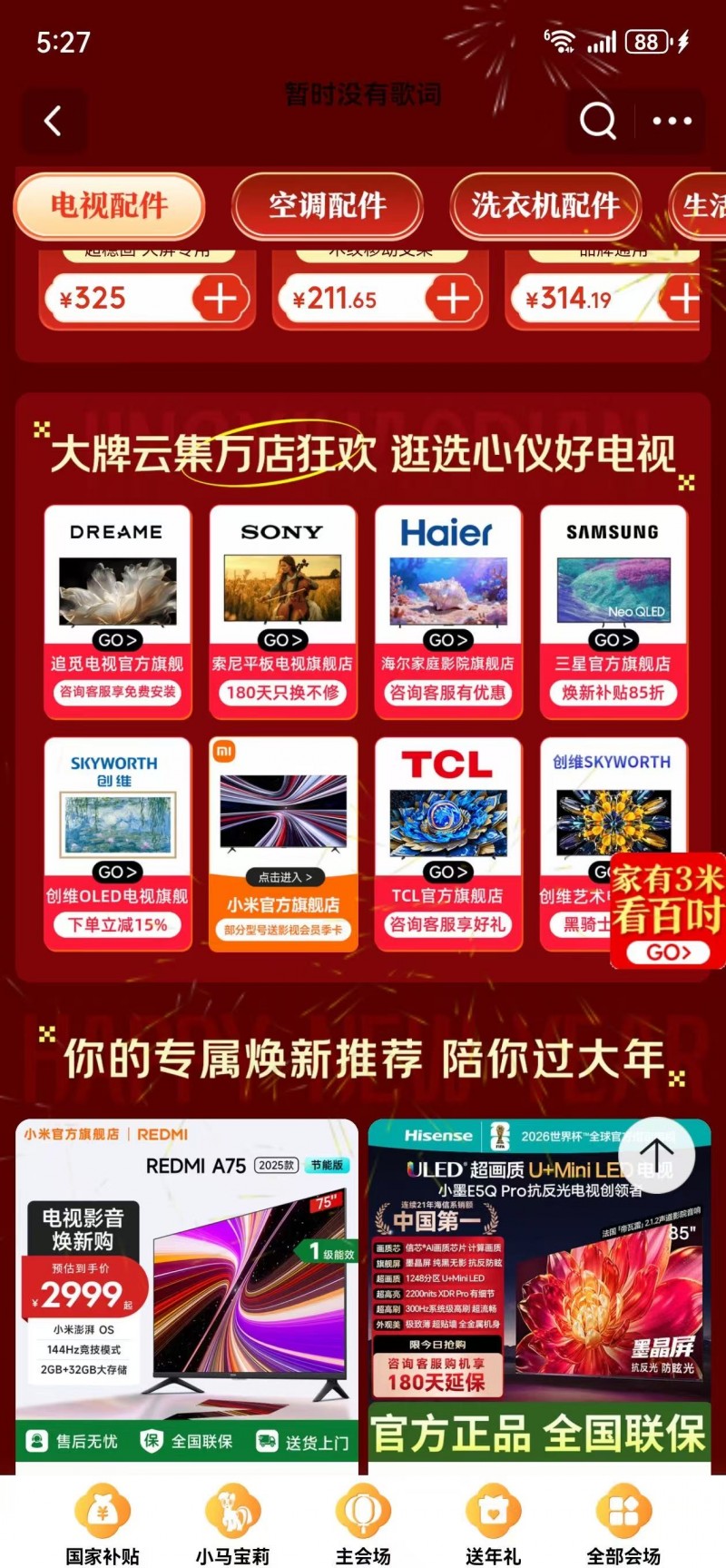 春晚的流量有多大,懂得人都懂。作为全民级的年度盛宴,每一秒都牵动着亿万家庭的目光。追觅AI电视在《下一站春晚》《马上春晚》等官方衍生节目中牢牢占据演播室C位后,人气直接爆棚,瞬间成为春节现象级爆款,直播间直接被抢疯,一路登顶春节会场销量霸榜第一名。