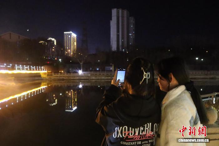 图为民众在西宁麒麟湾公园拍摄月全食景观。中新社记者 张忠苹 摄