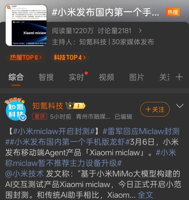 腾讯在深圳腾讯大厦设立了“龙虾安装站”,为开发者提供免费现场安装服务,现场排队氛围热烈。小米发布了国内第一个手机版OpenClaw,打响了“手机厂商Agent潮”的第一枪。黄仁勋更是称赞OpenClaw可能是历史上最重要的软件。
