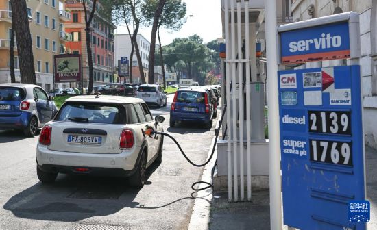 3月24日,市民在意大利首都罗马一处加油站加油。新华社记者 王楷焱 摄