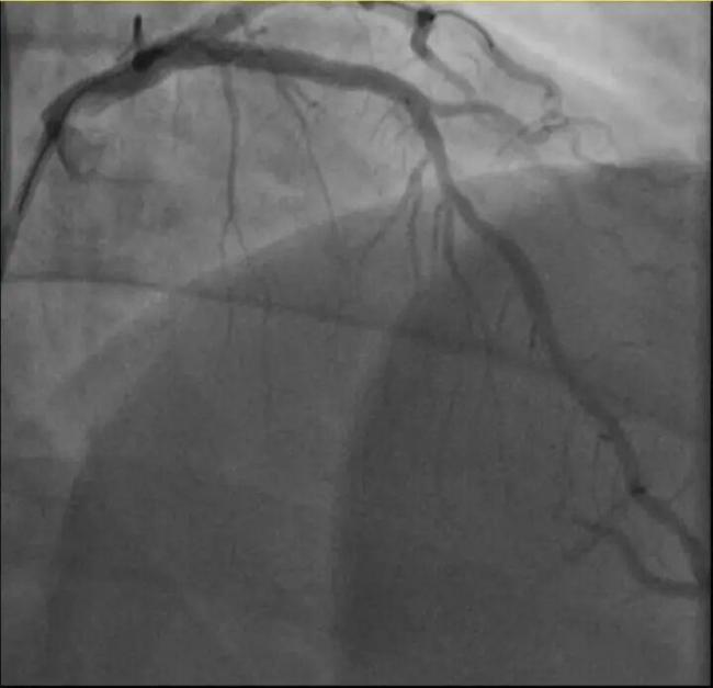 孙先生是一位羽毛球教练,身高173cm,体重约90KG。一年前,他因胸闷就诊时被查出心脏右冠中段、远端钙化斑块,以及心脏三支主要血管之一前降支中段60%狭窄。当时考虑到没有三高的危险因素(可能为早发冠心病家族史),孙先生坚信自己可以通过运动恢复健康,因此拒绝了介入治疗,只接受药物治疗。经过一年的努力,他的体重从96KG减到了90KG。然而,近日在带孩子练习羽毛球时,孙先生亲自上场挥杆仅10分钟左右,就因心前区剧烈绞痛被送进了急诊。医生分析,剧烈运动导致这位患者心脏的不稳定斑块破裂,进而造成前降支近段次全闭塞。所幸送医及时,孙先生的身体险情被化解。