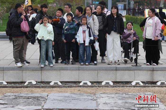 4月2日,江苏南京,孩子们在大报恩寺遗址博物馆春日文化盛会中观看演员表演。中新社记者 泱波 摄