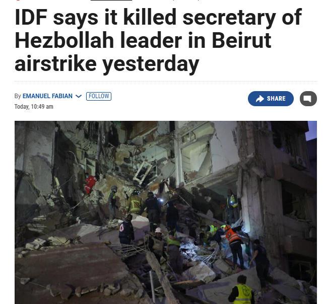 中新网4月9日电 综合法新社、《以色列时报》报道,以色列国防军9日发表声明说,黎巴嫩真主党总书记的私人秘书哈尔希在黎首都贝鲁特身亡。
