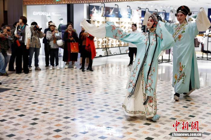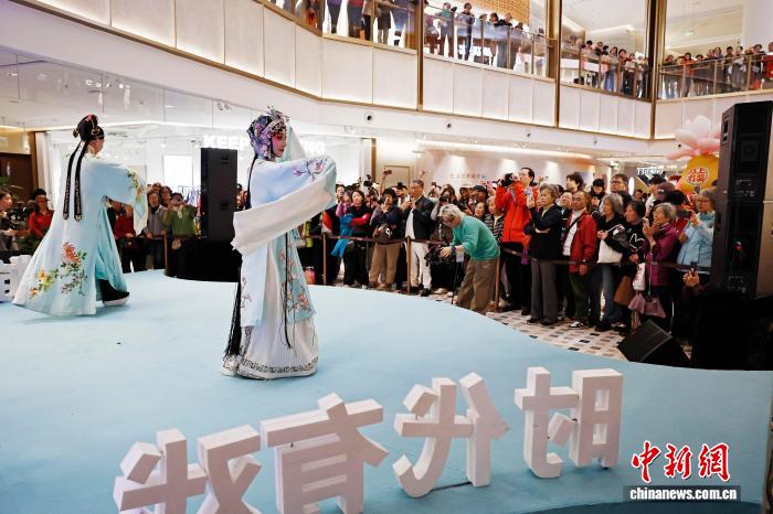 4月12日,民众在新天地东台里观看越剧表演。中新社记者 殷立勤 摄