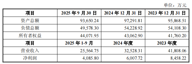 盛普股份2023年、2024年及2025年前9月,盛普股份营业收入分别为4.18亿元、3.25亿元和2.56亿元;净利润分别为8458.22万元、6007.72万元、4085.80万元。