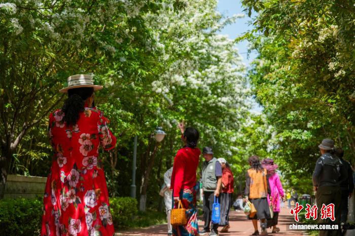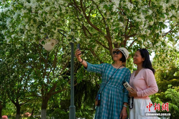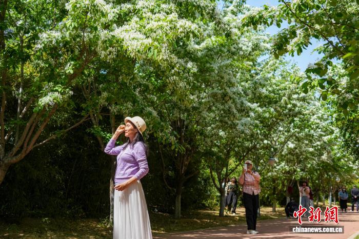 河南郑州:流苏花盛开引游人