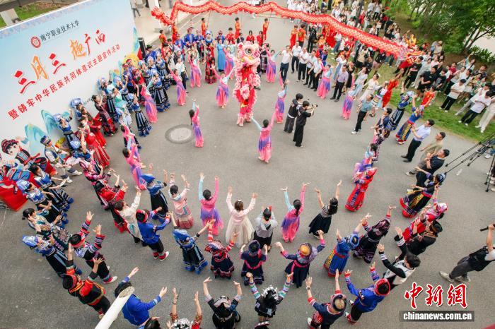 图为南宁职业技术大学学生在表演民俗舞蹈。南宁职业技术大学 供图