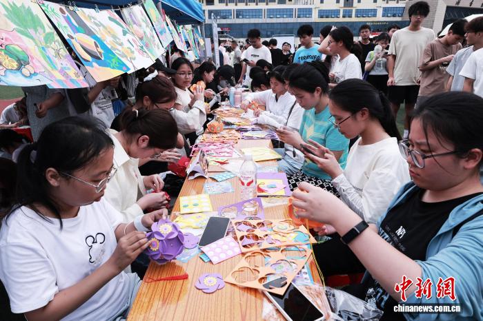 图为广西卫生职业技术学院学生在参加民族手工艺品制作体验活动。广西卫生职业技术学院 供图