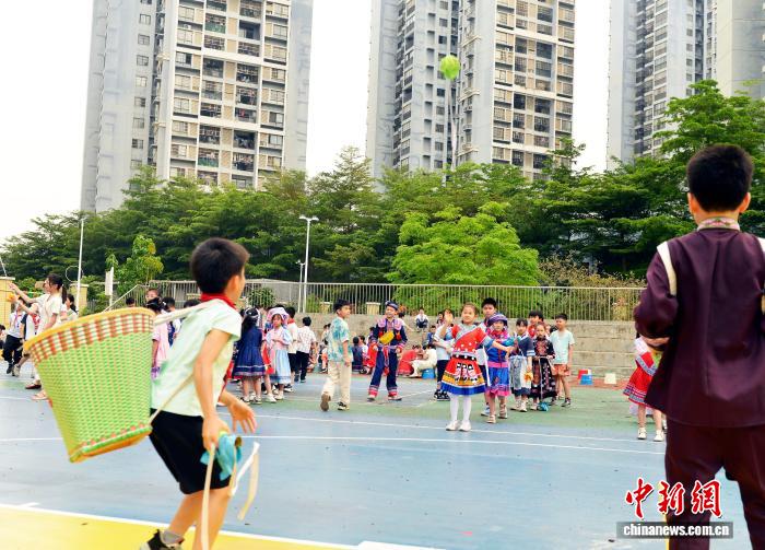 图为在广西三江侗族自治县古宜镇江川小学,学生在参加民俗展演活动。龚普康 摄