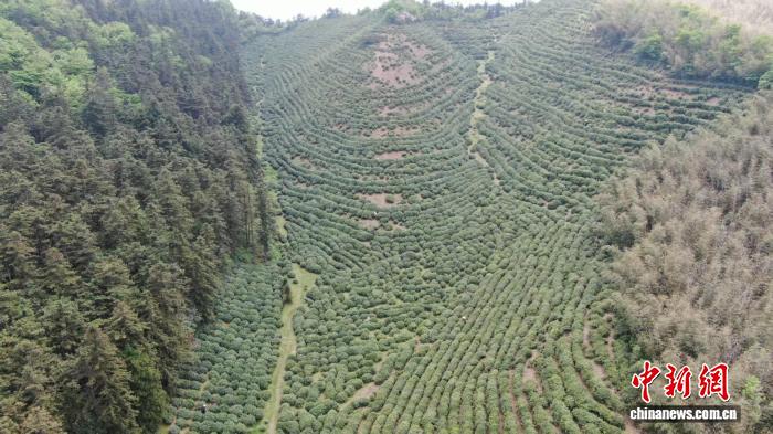 谷雨时节,航拍江西云居山真如禅寺周边的茶山。姜涛 摄