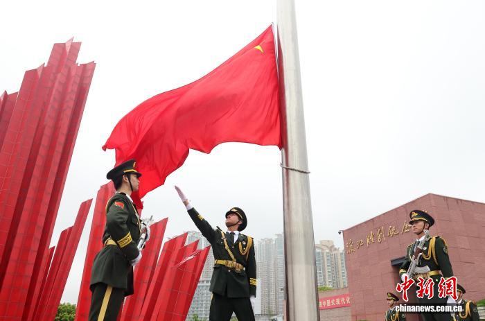 4月23日,江苏南京,庆祝渡江战役胜利暨南京解放77周年升国旗仪式在渡江胜利纪念馆渡江胜利纪念广场举行。图为升国旗仪式。中新社记者 泱波 摄