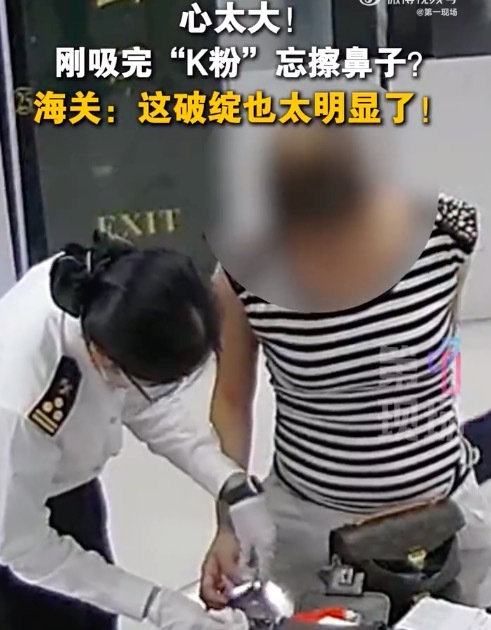 刚吸完“K粉”忘擦鼻!女子鼻沾K粉海关当场搜出毒品