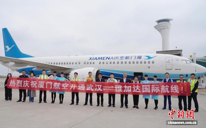 中新网武汉4月12日电 (唐熠 饶晗 张芹)搭载150余名旅客的厦航MF8683航班12日16:40从武汉天河国际机场起飞,飞往雅加达苏加诺-哈达国际机场。这标志着武汉往返印度尼西亚首都雅加达的定期客运航线正式通航。该航线由