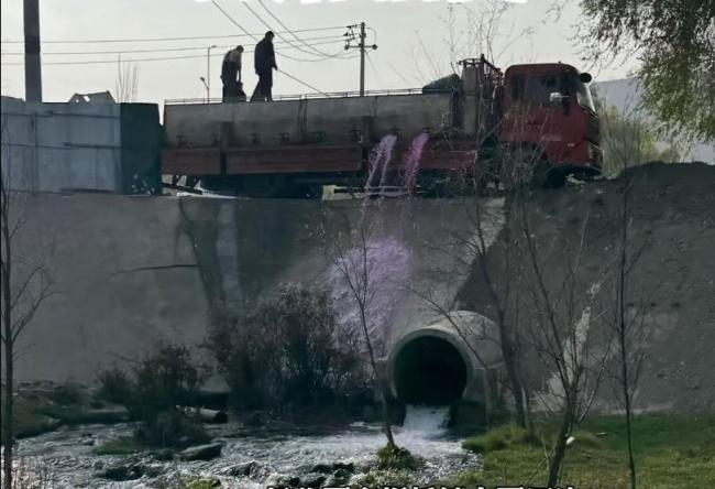 11月8日,有网友反映甘肃省临夏州临夏市折桥镇大夏河边有车辆疑似在排污。视频显示,一辆四川牌照的大卡车停在路边,打开管口排水,现场泔水味特别腥臭。事发地点位于九眼泉农庄正对面,距离下游的刘家峡水库直线距离仅20公里
