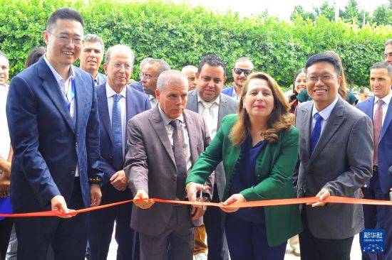 9月8日,突尼斯工业、矿业与能源部长法蒂玛·萨比特·奇布卜(前右二)在本阿鲁斯省参加一家中国汽车零配件厂的开工剪彩仪式。新华社发(阿代尔摄) 新华社突尼斯9月9日电(记者黄灵 王一盛)突尼斯工业