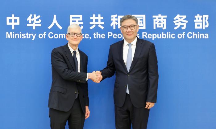 商务部部长王文涛会见苹果公司首席执行官库克