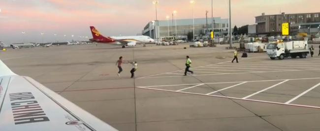 男子登机前绕着飞机跑被警方抬走 涉及其他案件处理中