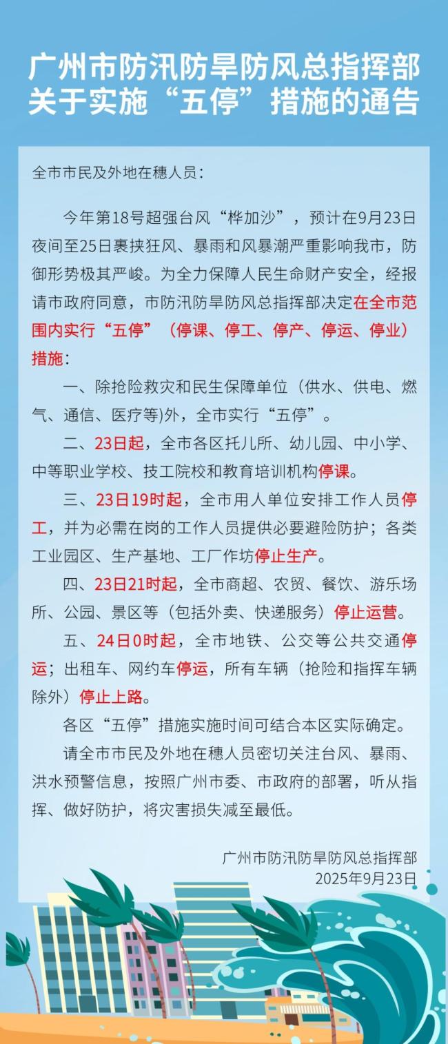 广州深圳等多地宣布全市五停 迎战超强台风“桦加沙”