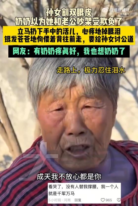 孙女割双眼皮奶奶以为被打心疼落泪 奶奶的爱感动网友