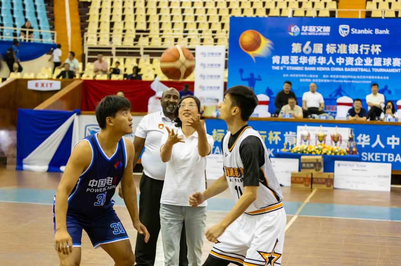 人民网内罗毕10月13日电(记者黄炜鑫)第六届“标准银行杯”肯尼亚华侨华人中资企业篮球赛11日在肯尼亚首都内罗毕莫伊国际体育中心闭幕。中国驻肯尼亚大使郭海燕为决赛开球。主办方供图本届比赛以“纪念中国人