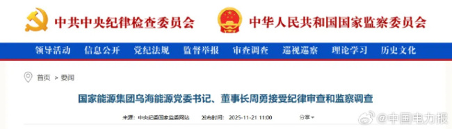 国家能源集团乌海能源党委书记、董事长周勇接受纪律审查和监察调查