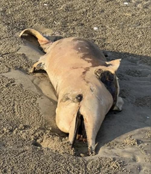10月26日,在广东湛江硇洲岛谭北湾的一处沙滩上发现了一只中华白海豚的尸体。这只成年白海豚吻部修长,身体呈现出灰白色并带有斑点。次日,从湛江市硇洲派出所了解到,初步调查显示这只白海豚因难产而死亡,随后被海浪冲上了岸边沙滩